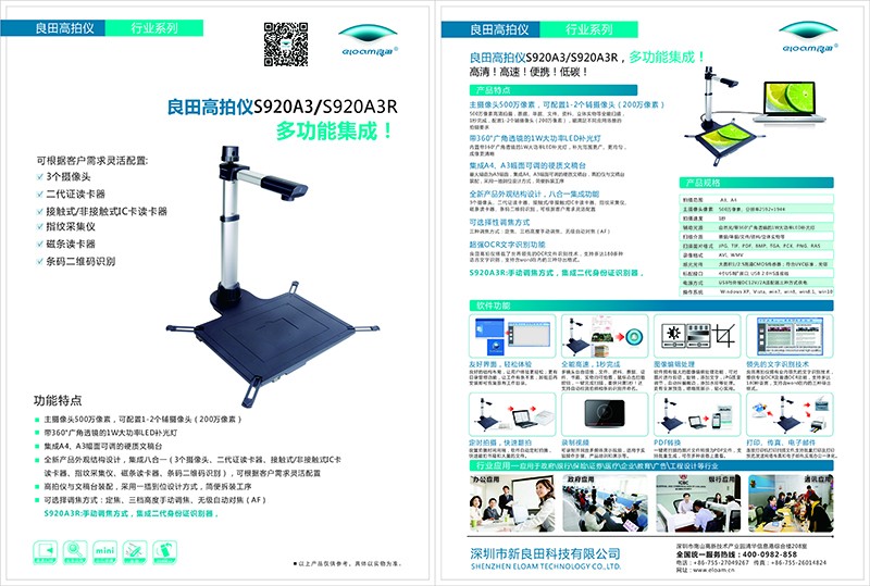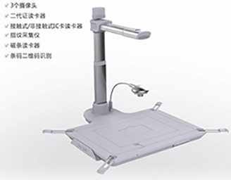 全新產品外觀結構設計,高集成十合一(主攝像頭、副攝像頭、第三號擴展攝像頭、二代證讀卡器、接觸式IC卡讀卡器、非接觸式IC卡讀卡器、指紋采集儀、磁條讀卡器、條碼二維碼識別、MIC),可根據具體需求靈活配置; 底座A3/A4兼容,便于柜臺擺放;重量輕巧、便于搬移;高拍儀與文稿臺裝配,采用一插到位設計方式,簡便拆裝工序;主攝像采用專用的精準定位技術,保證視頻圖像在底座上居中且無畸變,操作員只需按底座上的提示框放置掃描件即可,簡單方便;鋁合金材質結實耐用, 精巧美觀,防靜電、防震;功率小、節能(≤2.5W);設備須采用USB 2.0 連接與供電,設備使用壽命≥4年。 |